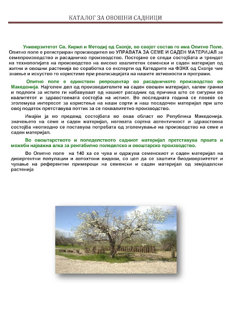 Факултет за земјоделски науки и храна-Опитно поле, почна со нарачки за овошни саднили, исто така може да се склучат договори за производство на овошен саден материјал по ваши потреби и ваши сорти ,со тоа што во секое време ке имате увид и контрола во производството